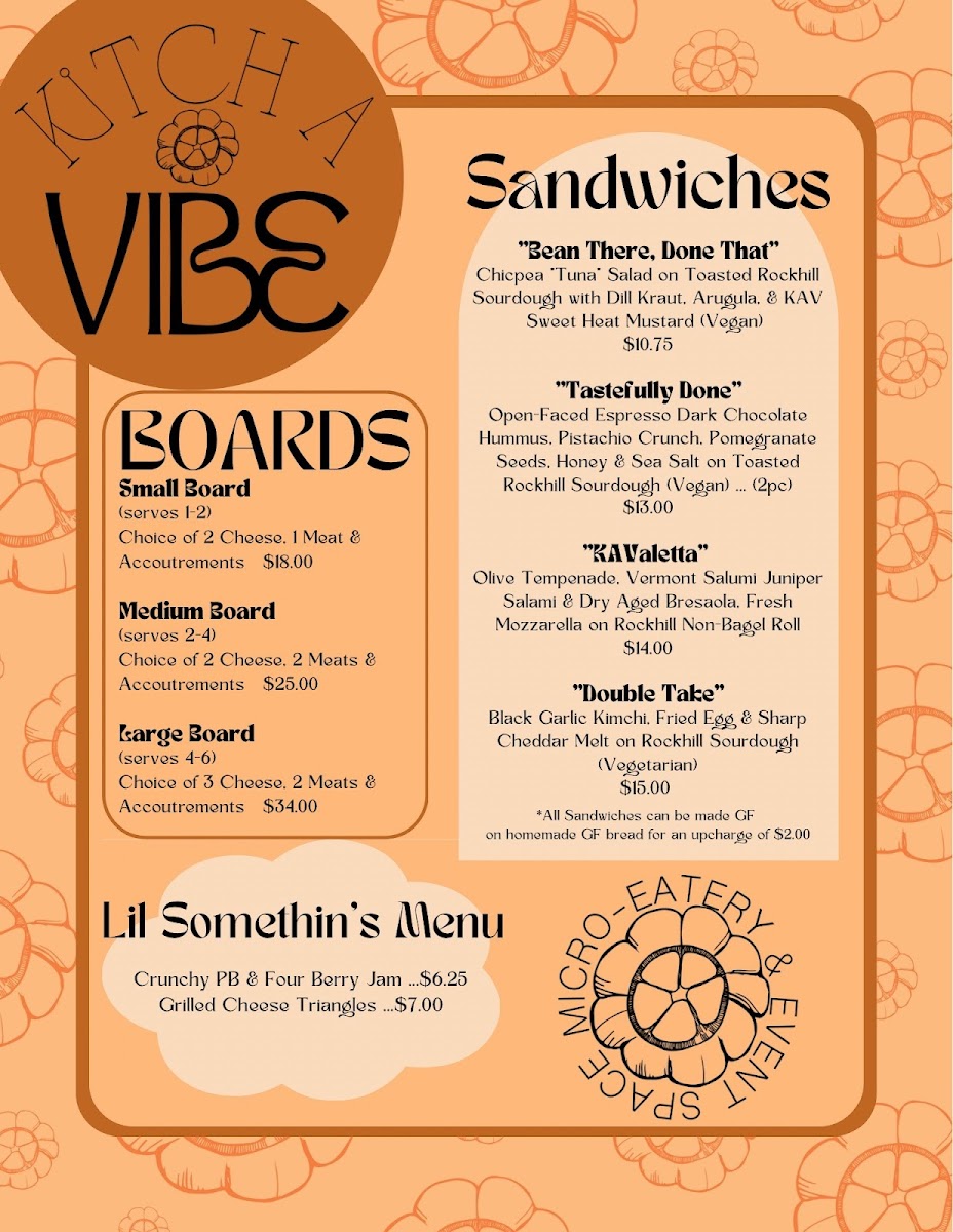 Get ready to pamper your taste buds with an array of tantalizing options! Start with their expertly crafted BOARDS, featuring a selection of fine cheeses and savory meats paired with delightful accoutrements. Choose from the Small Board for just $18.00 or indulge in the Large Board for $34.00, ideal for sharing or treating yourself.